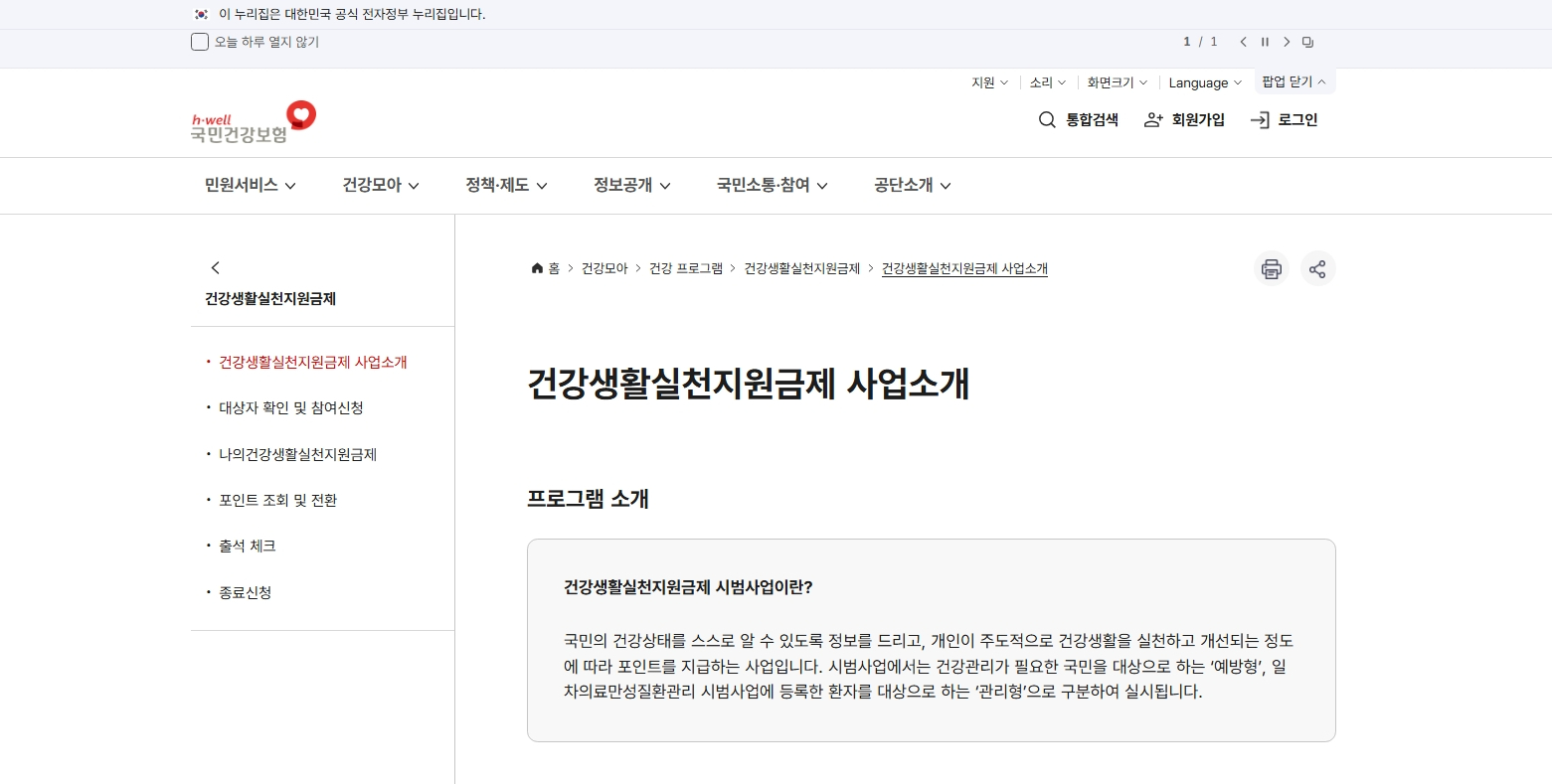 건강생활 실천지원금제는 정책 변화에 따라 대상 기준, 포인트 획득 방법, 사용처 등이 변경될 수 있습니다.