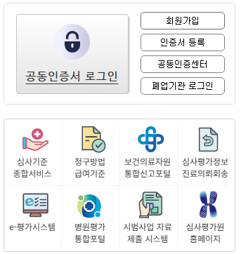 가장 먼저, 포털사이트 검색창에 심사평가원 요양기관 업무포털을 검색하여 접속합니다. 접속 후에는 안전한 로그인을 위해 공인인증서(현재는 공동인증서로 명칭 변경)가 필수적으로 요구됩니다. 기관 공동인증서 또는 개인 공동인증서 중 요양기관 등록 시 사용한 인증서를 준비해야 합니다.