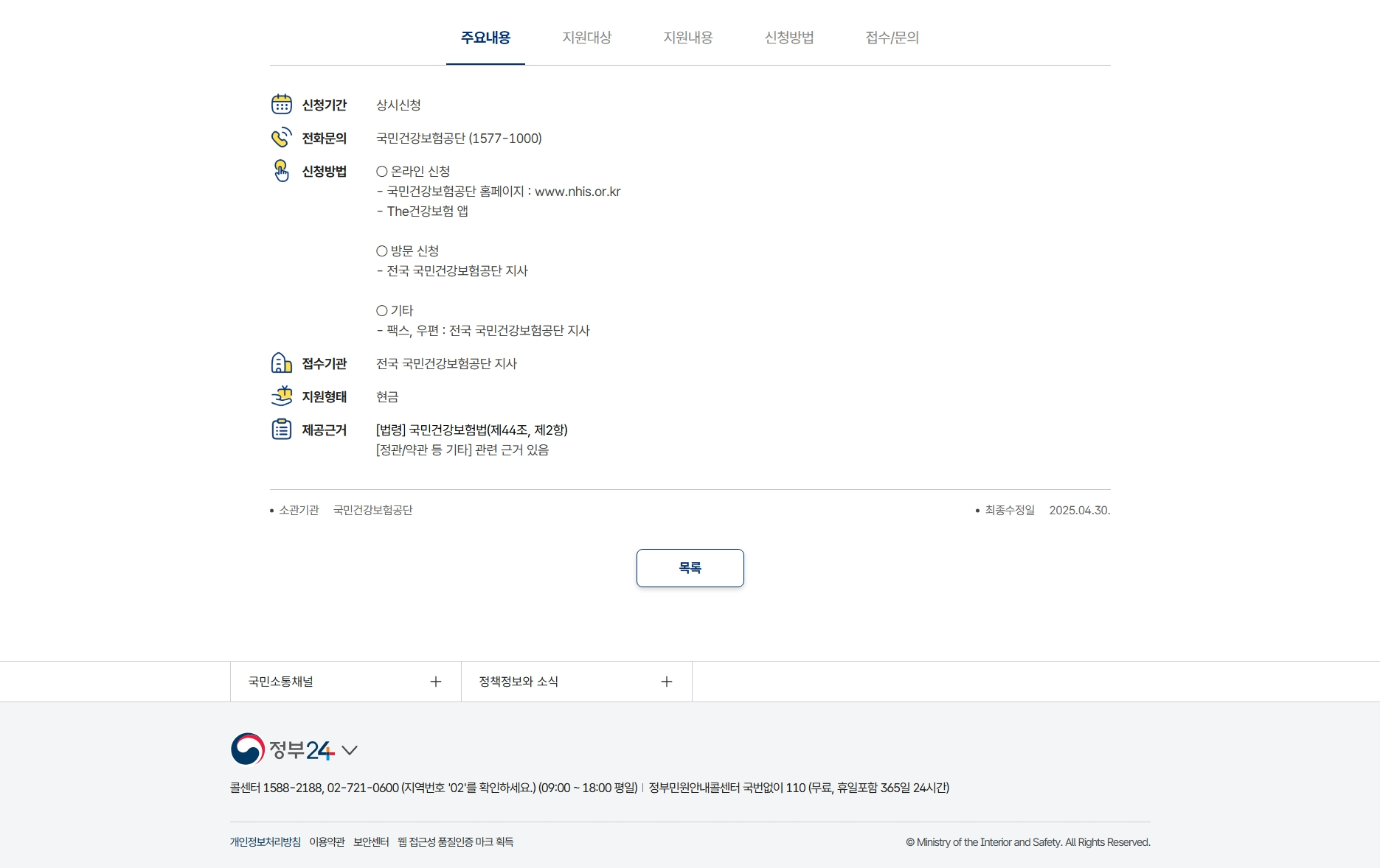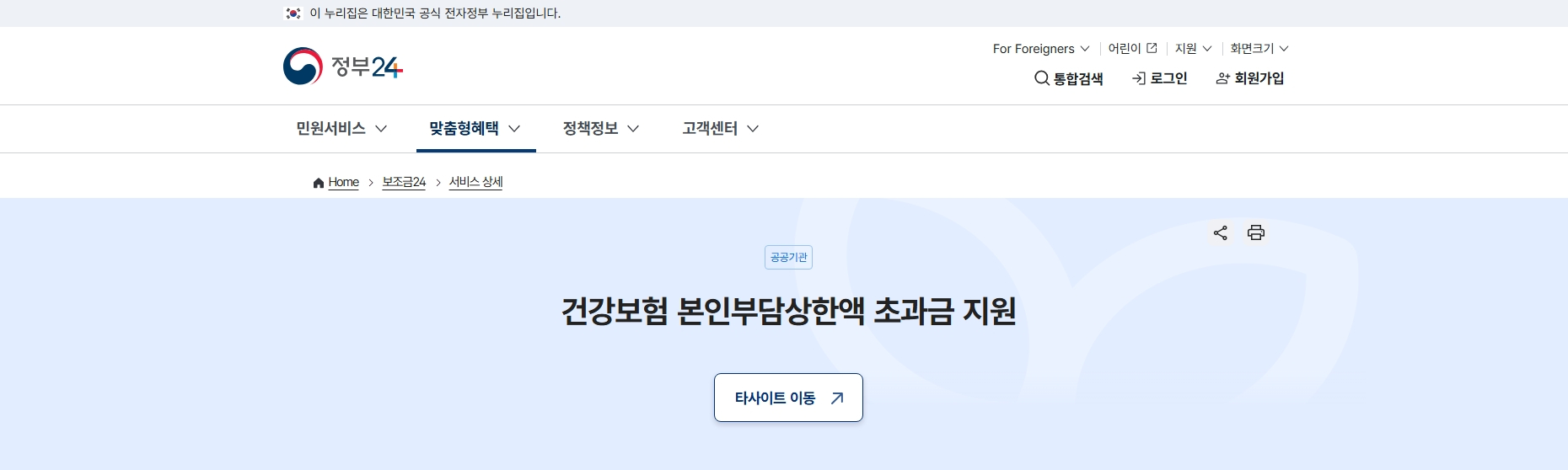 통합 민원 서비스 : 정부 24에서도 일부 건보 관련 민원 서비스를 제공하지만, 본인부담 상한제에 대한 상세 정보는 건보공단 홈페이지가 더욱 전문적입니다. 하지만 일반적인 건보 관련 정보를 얻는 데는 유용할 수 있습니다.