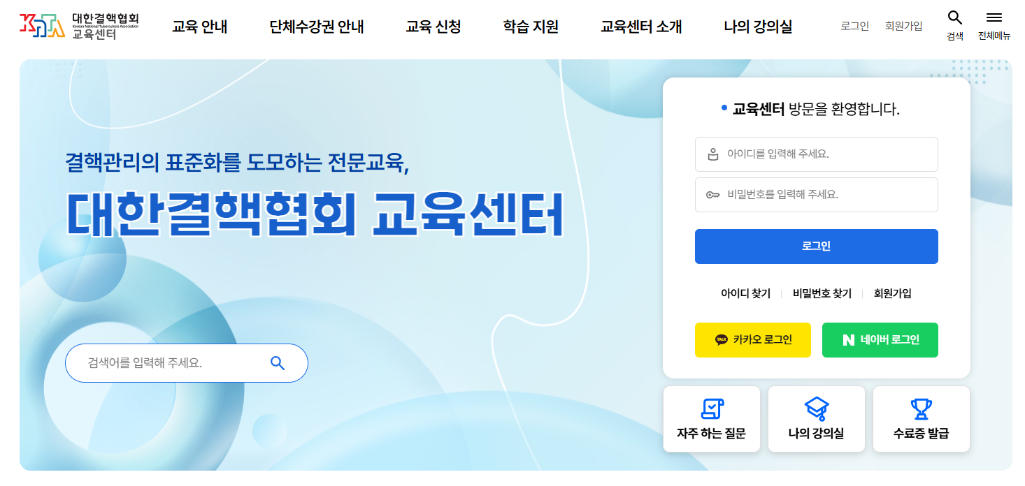 결핵예방교육을 수강하기 위한 첫걸음은 바로 대한결핵협회 교육센터 홈페이지에 회원가입하는 것입니다. 검색창에 대한결핵협회 결핵예방교육센터를 입력하면 쉽게 접속할 수 있습니다.