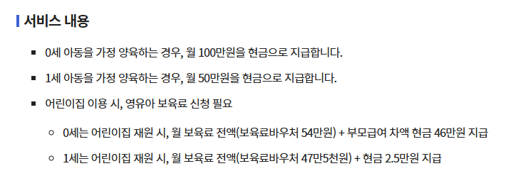 이 시기의 자녀를 양육하는 부모에게는 만 0세보다는 적은 금액의 부모급여가 지급됩니다.