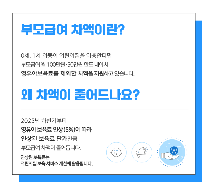 보육료 바우처와 부모급여는 중복 수혜가 불가능하므로, 부모급여 지급이 중단됩니다.