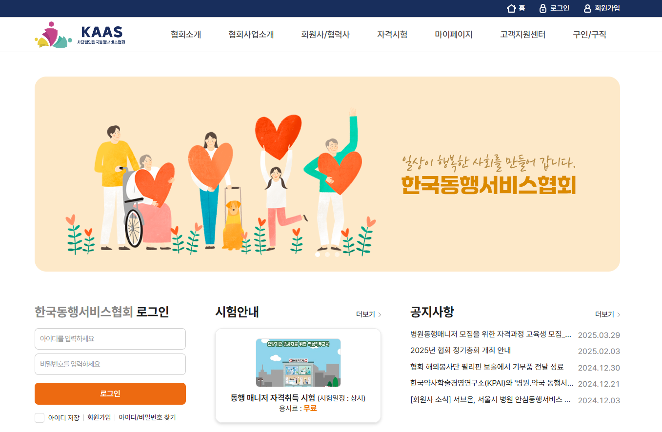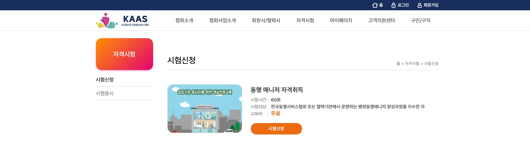병원 동행 매니저 양성과정을 운영하고 있으며, 협회 자체 자격시험을 통해 자격증을 발급합니다.