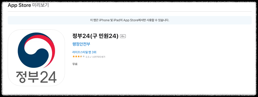 대표적인 앱은 정부24, 질병관리청의 COOV, PASS 등이 있다.