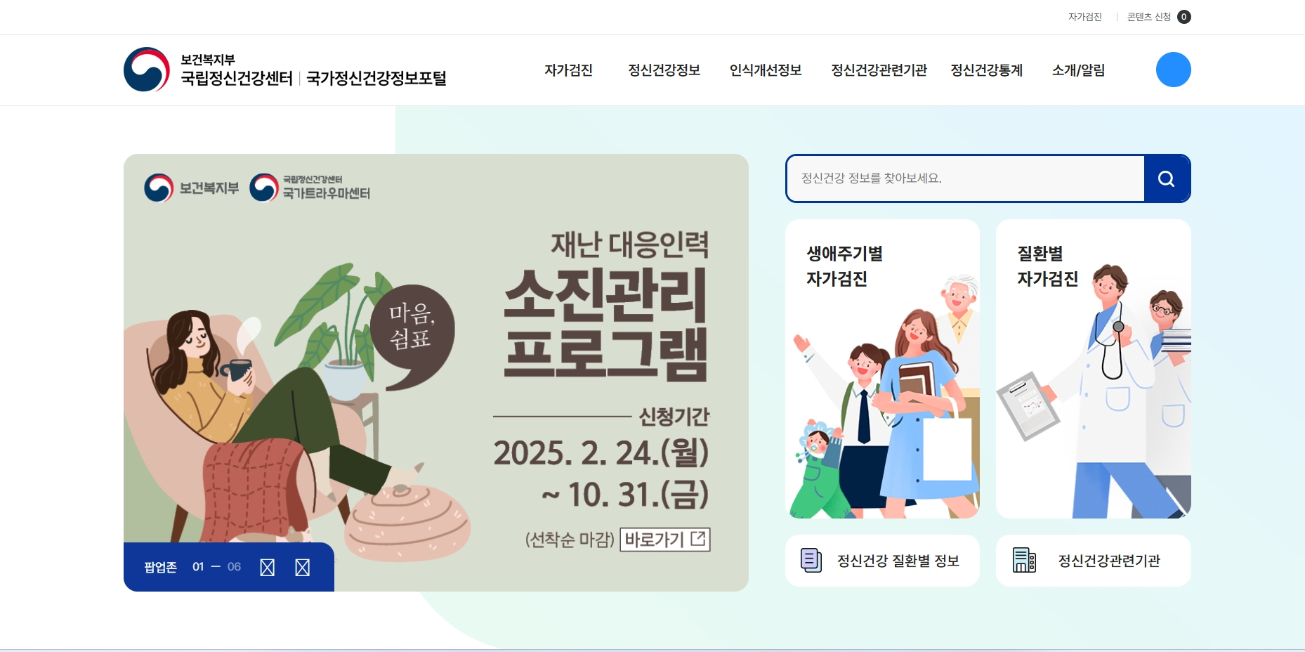 마음건강 혹은 심리지원 키워드로 검색한다.